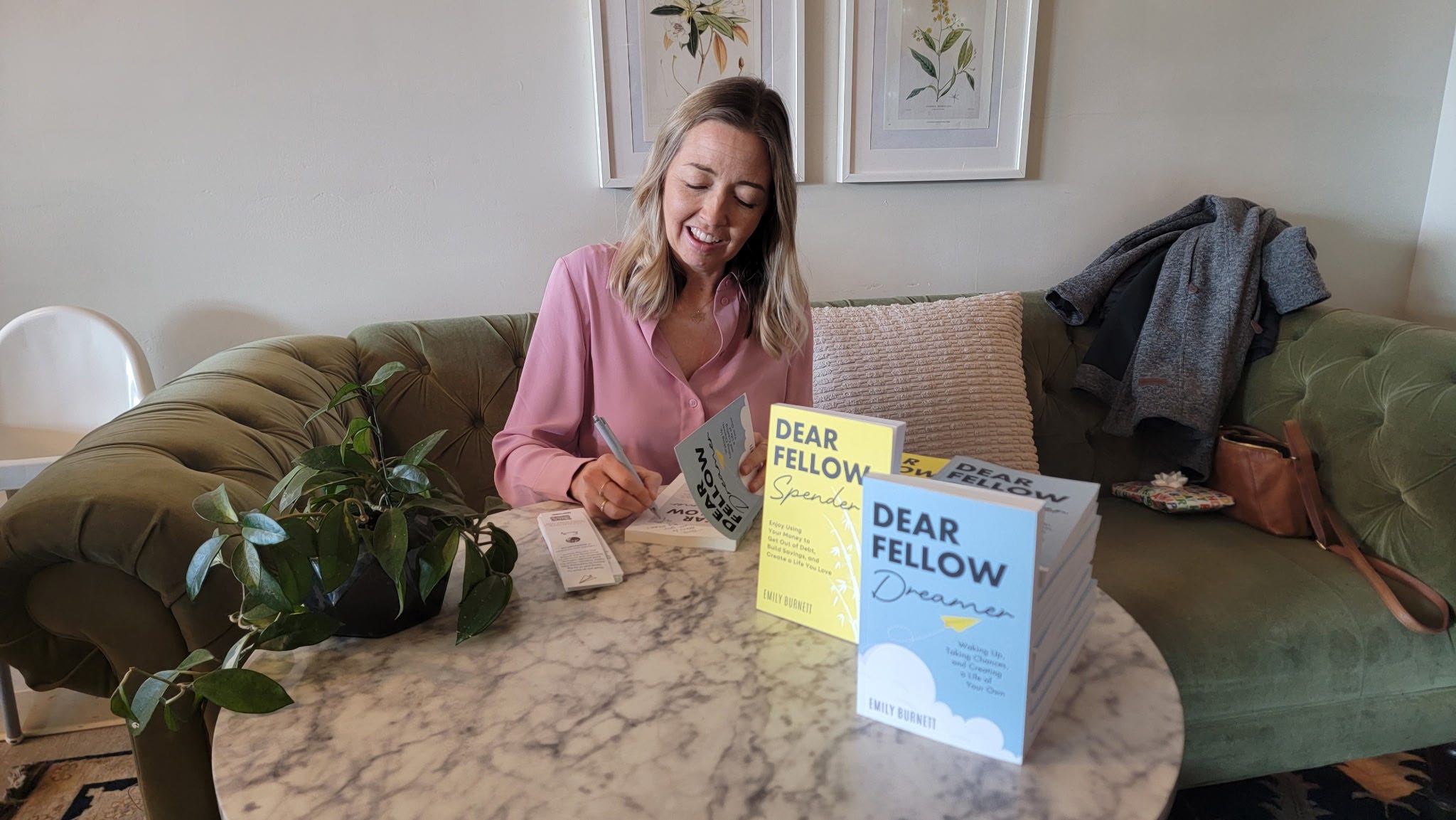Trying to salvage this ill-fated relationship, I pulled out a few copies of my first book, Dear Fellow Spender, and offered to sign one as a consolation prize. His response was unexpected, and cool. With a meaningful pause, he looked at the bright yellow cover and subtitle and said, “That is actually the book I need” he said. “The Universe really knows what we need.”