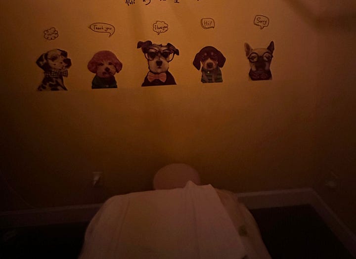 Western massage establishments can be pretty froo froo: carefully curated aromatherapy, impeccable decor, very gentle music which reminds me of the music we played during nap time at the daycare where I worked for a summer in college. Everything is done almost reverently.